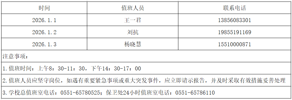 2025-2026学年寒假值班表