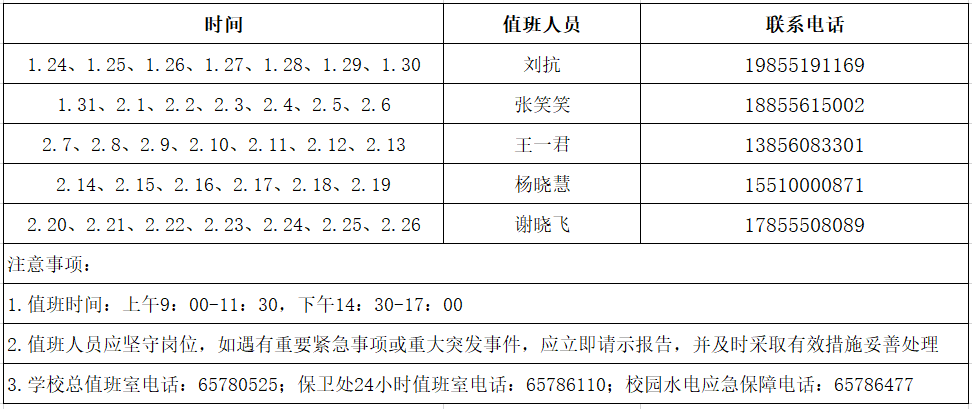 2025-2026学年寒假值班表