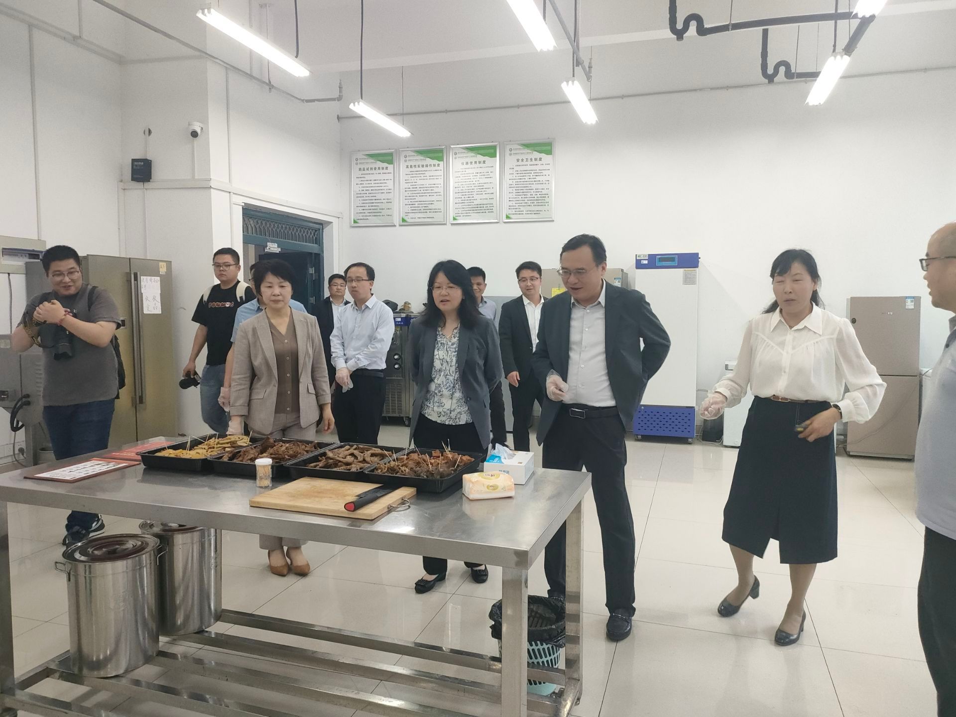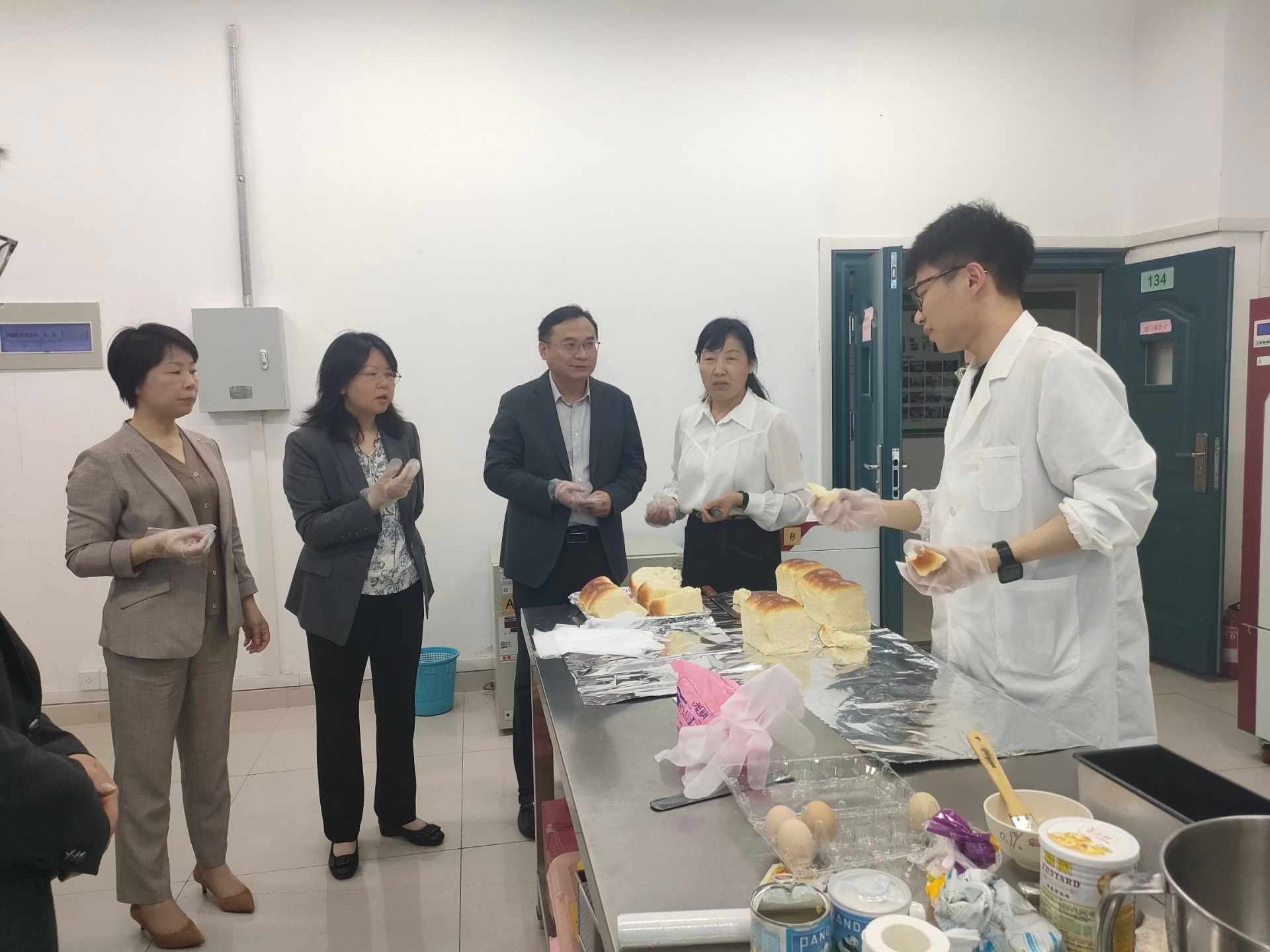 唐红萍对周文芳一行的到来表示热烈欢迎,她介绍了实验室的发展历程、研究方向、科研成果、人才培养和社会服务,并邀请品尝了学生开发的土司面包、卤味、软糖等食品。操海群指出,要充分发挥平台优势,对特色农产品精深加工,开发代表安农品牌的特色食品。周文芳对实验室在学科建设、科学研究、社会服务(滁州琅琊博士团)等方面取得的成绩给予高度评价,希望今后开展常态化交流合作,共同为区域经济社会高质量发展做出贡献。(文图/编辑/张笑笑 预审/刘抗 审核/梁进)