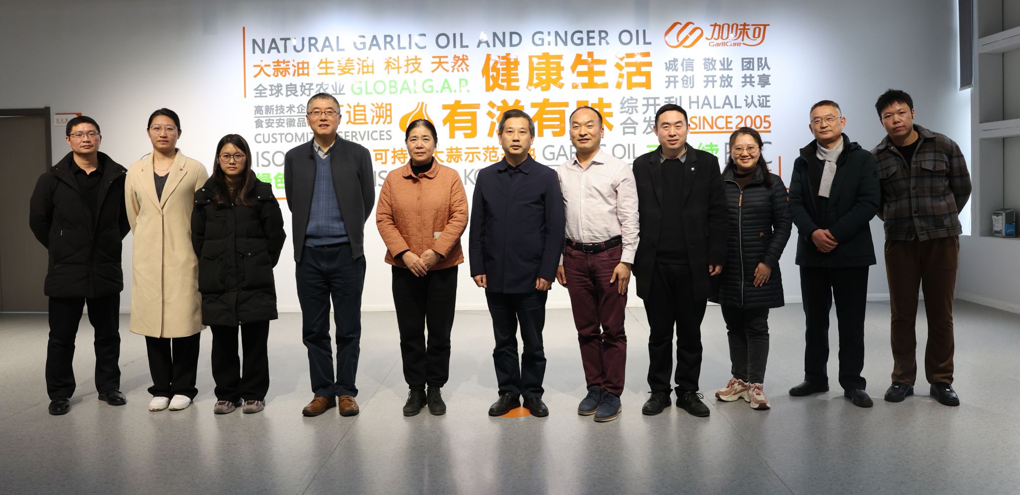 安徽加味可生物科技有限公司总经理张士伟热情接待了专家一行,并详细介绍了公司的发展历程、产业布局及未来规划。随后通过座谈交流,专家团队重点围绕大蒜产业现状及其深加工产品的研究与开发进行调研交流。梁进副院长表示,食品与营养学院在大蒜、生姜等特色农产品研究领域具有丰富的科研资源和技术积累,希望校企双方能够优势互补,共同推动安徽特色农产品产业高质量发展。公司技术质量部经理王益友带领专家参观公司的厂房车间布局。在参观过程中,双方就生产工艺、技术创新、产品研发等方面进行了深入交流。专家们对公司的生产规模、研发实力和技术水平给予了高度评价。