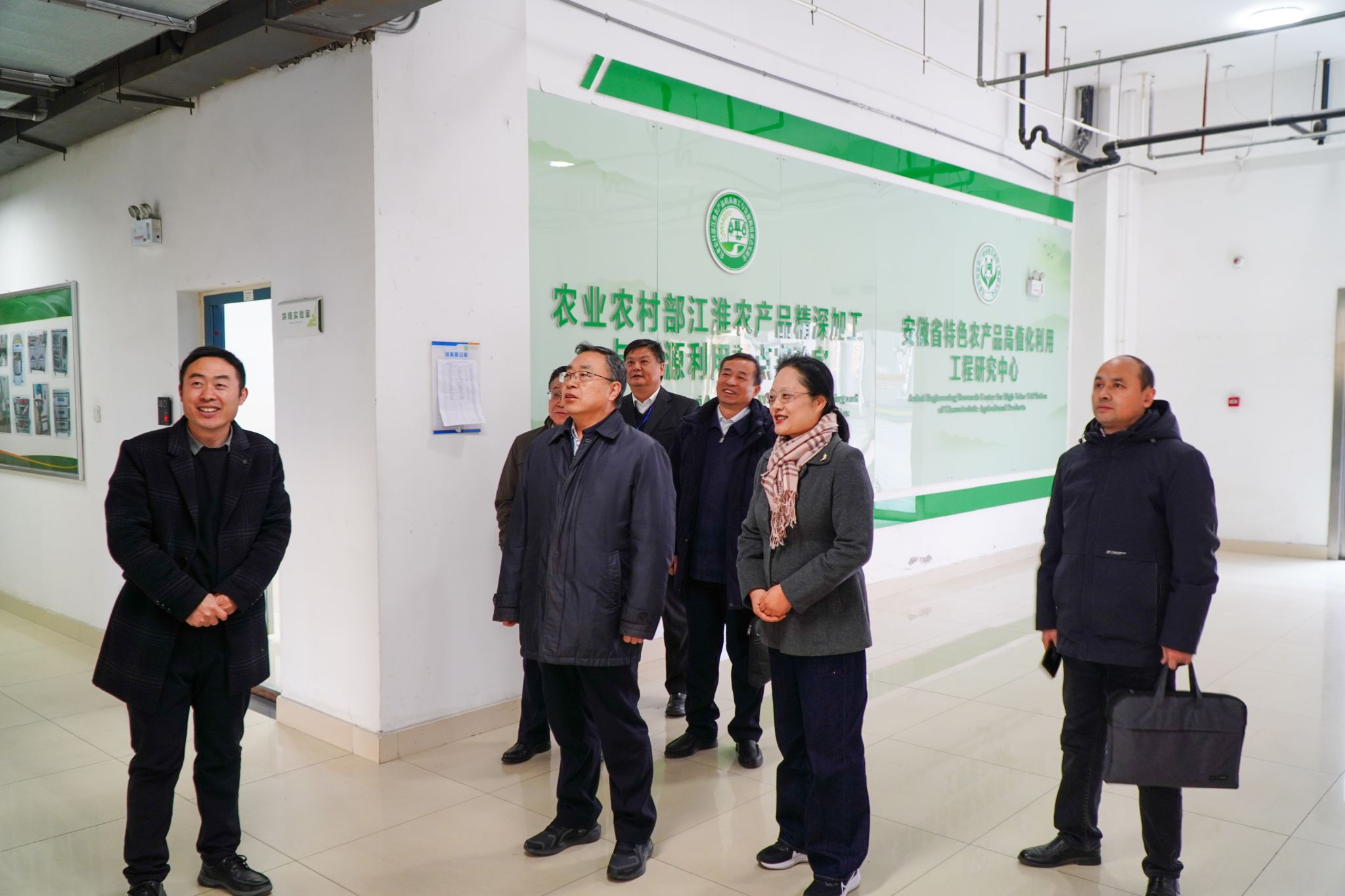12月17日下午,中国粮油学会理事长卢景波一行来农业农村部江淮农产品精深加工与资源利用重点实验室和安徽省特色农产品高值化利用工程研究中心调研指导。校党委常委、副校长李红陪同调研。食品与营养学院以及实验室相关负责同志参加调研活动。