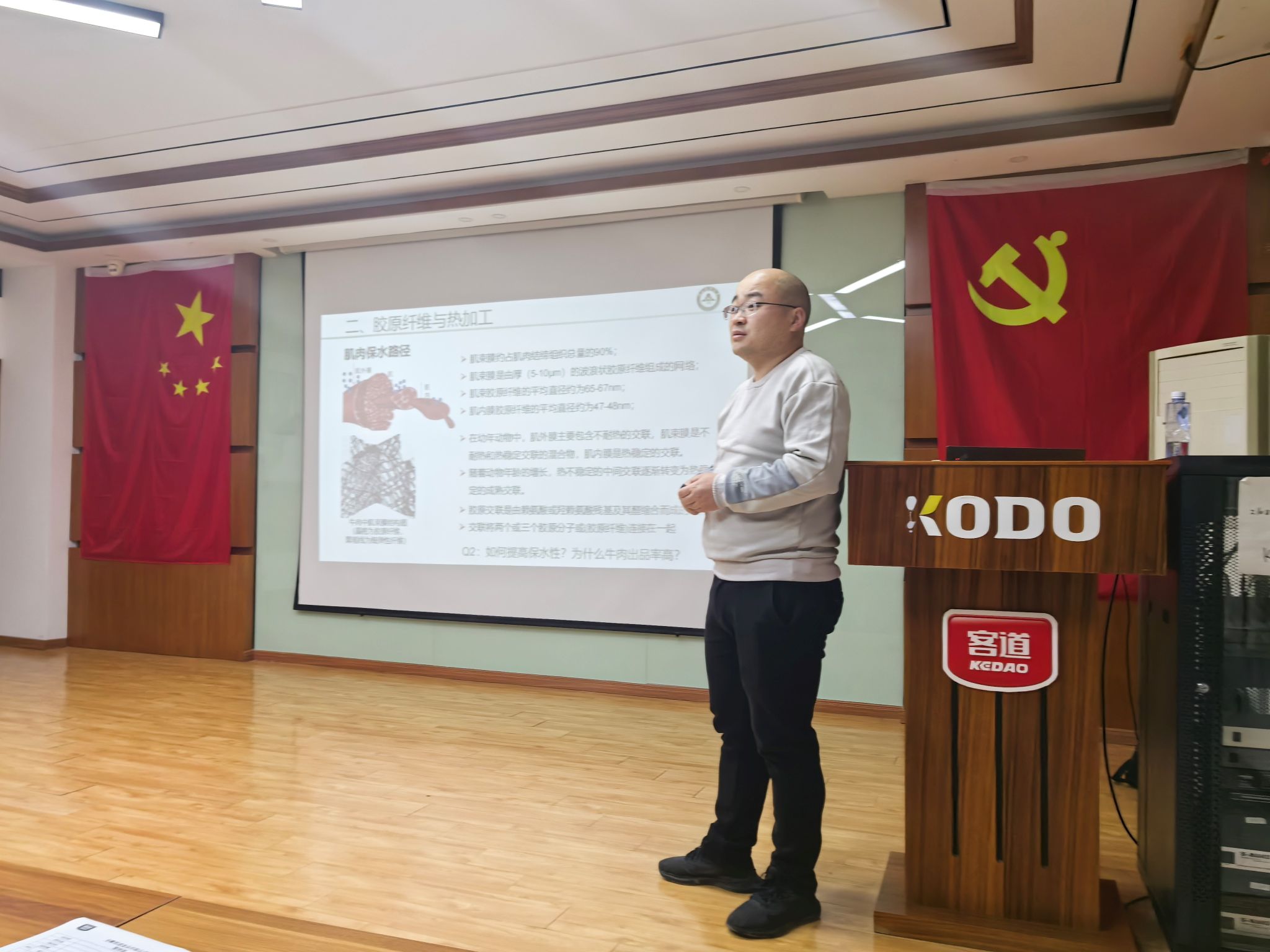 戚教授对客道食品在预制菜领域取得的成绩给予充分肯定,对客道绿色食品产业园各项建设工作有序推进予以高度赞赏,并鼓励客道要持续创新,不断加大产品研发,提高产品质量和品牌影响力。随后戚教授为企业品控部、研发部20多名技术人员就产品生产研发过程中的技术问题进行指导培训,并与员工进行深入的交流,解决企业面临的相关痛点问题。