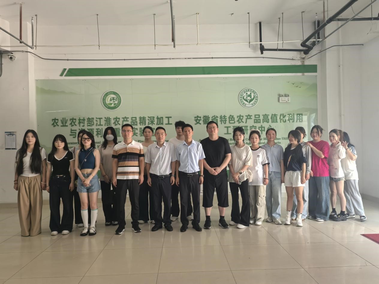 为激发食品专业学生的学习热情,加深其对专业发展、岗位认知及未来职业规划的理解,7月8日,安徽林业职业技术学院来实验室开展参观学习交流活动。安徽林业职业技术学院蒋其忠老师带领学院15位学生参与此次学习交流活动。食品与营养学院副院长梁进、农业农村部江淮农产品精深加工与资源利用重点实验室副主任刘抗为来访师生介绍了学院的详细情况,以及实验室在粮油、果蔬、畜产、经济特林等领域的科研成果及教学优势。随后实验员谢晓飞带领师生参观工程实验室,更深入的了解实验室在食品加工、检测的雄厚实力与深厚底蕴。随后谢老师深入浅出地讲解了食品加工与检测设备相关的关键知识与实验室安全管理要点,学生们积极参与互动交流,进一步夯实了理论基础。
