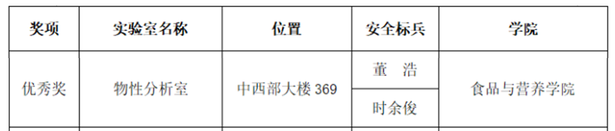 为进一步强化我校实验室安全文化宣传,提升师生实验室安全卫生意识,构建安全整洁的实验室环境,营造良好的实验室安全文化氛围,农业农村部江淮农产品精深加工与资源利用重点实验室积极参与校实验室安全管理中心于“实验室安全月”期间组织开展的实验室风采评选活动,并荣获本次评选的“优秀奖”。