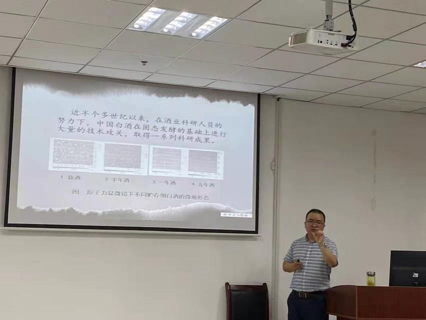 本网讯 2022年5月20日,安徽省农产品加工工程实验室邀请四川省酒业集团有限责任公司质量总监、川酒研究院院长赵金松教授级高级工程师在西部综合楼259会议室为实验室师生做题为“中国白酒产业的发展脉络”的学术报告。报告会由实验室主任杜先锋教授主持,茶与食品科技学院党委副书记、副院长夏业鲍,实验室副主任梁进,部分教师代表出席报告现场会。