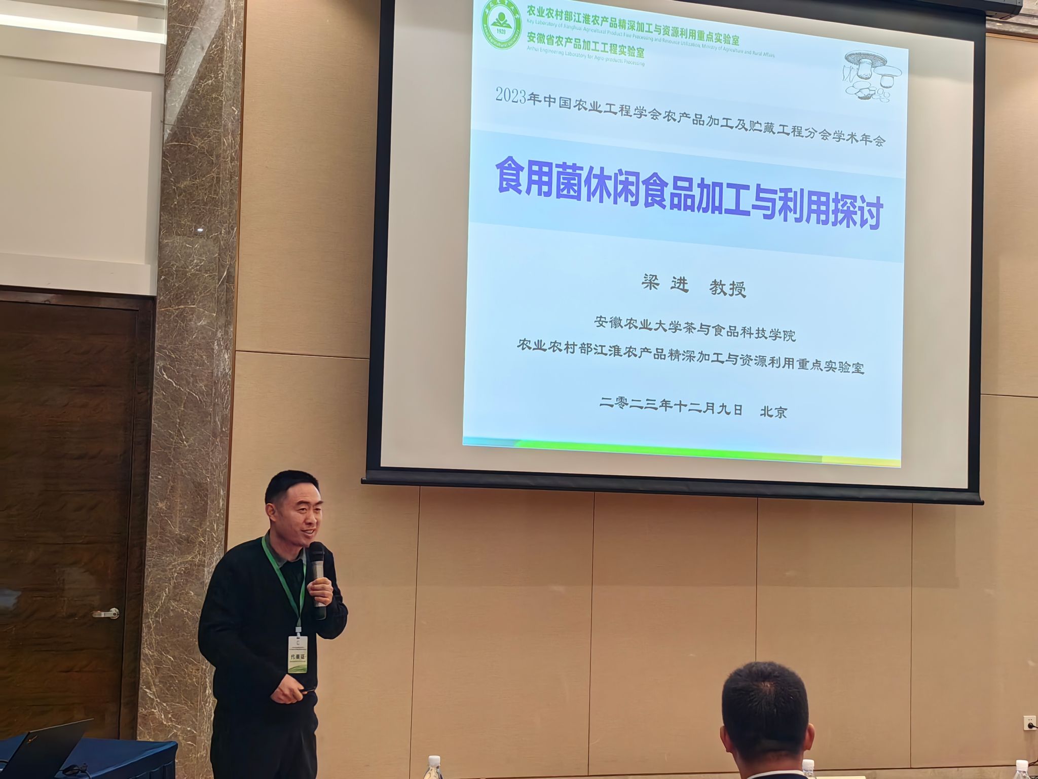 2023年中国农业工程学会农产品加工及贮藏工程分会学术年于12月8-10日在北京市举办。农业农村部江淮农产品精深加工与资源利用重点实验室及安徽省特色农产品高值化利用工程研究中心常务副主任梁进教授以及实验室青年教师蒋龙伟副教授应邀参会,并分别做了题为“食用菌休闲食品加工与利用探讨”和“基于植物花青素智能活性包装膜的构建及应用”交流报告,受到同行广泛关注与认可。会后,实验室教师还参观了会议承办单位中国农业大学食品科学与营养学院相关科研平台,学习借鉴实验室相关管理经验。